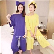 蝴蝶結發帶+上衣+七分褲三件套 [套裝] #1-灰...