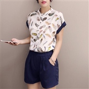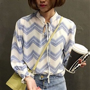 條紋百搭樽領印花雪紡衫 [上衣]