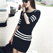 修身包臀短裙上衣套裝 [套裝] #1-黑底白條 #...