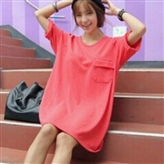 寬鬆口袋中長款純色短袖上衣 [上衣] [TEE] ...