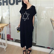 條紋六角星鏤空圓領長裙連身裙 [連身裙]