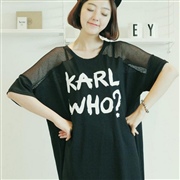 寬鬆中長款鏤空拼接短袖上衣 [上衣]