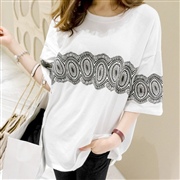 寬鬆中長款印花圓領短袖上衣 [上衣] [TEE]