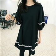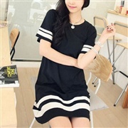 寬鬆下擺條紋短袖連身裙 [連身裙]