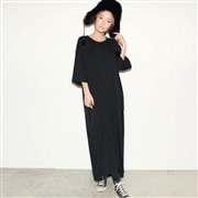 七分袖貼布寬鬆中長款上衣 [上衣] [TEE]