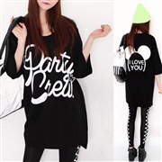 寬鬆長款圓領字母印花圓領短袖上衣 [上衣] [TE...