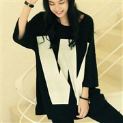 長款寬鬆大字母圓領五分袖上衣 [上衣] [TEE]