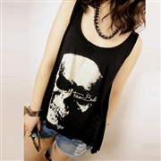 骷髏頭寬鬆不規則下擺背後鏤空背心 [背心.馬甲] ...