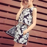 大花無袖休閒上衣+寬鬆舒適短褲套裝 [套裝] #1...