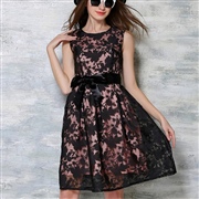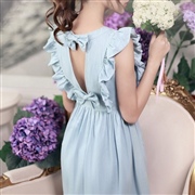 蝴蝶結荷葉邊牛仔背心連身裙 [連身裙]