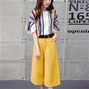 寬鬆條紋上衣闊腿褲套裝 [套裝]