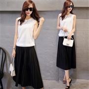 純色無袖背心上衣百褶裙褲兩件套裝 [套裝] #1-...