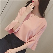 百搭珍珠荷葉邊雪紡衫 [上衣] #1-淺綠色 #2...