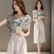 百搭印花上衣七分褲闊腿褲套裝 [套裝]