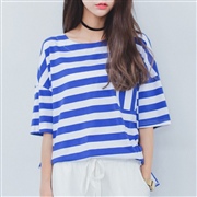 寬鬆圓領條紋短袖上衣 [上衣] [TEE] #1-...