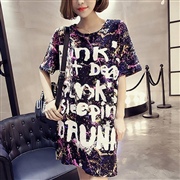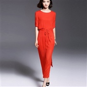 圓領假兩件連身裙開叉長裙 [連身裙] #1-黑色 ...