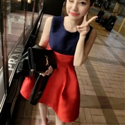 撞色拼接高腰蓬蓬連身裙 [連身裙]
