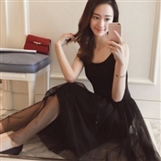 吊帶背心網紗肩帶連身裙 [連身裙] #1-黑色 #...