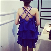 層層荷葉邊蛋糕裙吊帶背心後背交叉雪紡露背連身裙 [...