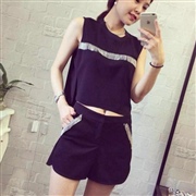 流蘇鏈條短款無袖露臍上衣短褲兩件套 [套裝] #1...