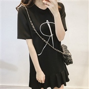 字母印花百褶短裙連身裙 [連身裙] #1-白色 #...