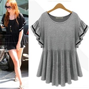 半袖裙擺上衣 [上衣] #1-淺灰色 #2-黑色