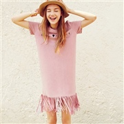 繡花流蘇繡花短袖連身裙 [連身裙]