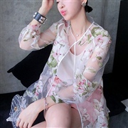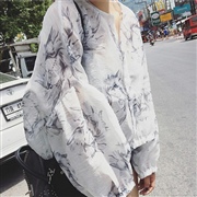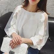 純色圓領蝴蝶結網紗拼接長袖雪紡 [上衣] #1-白...