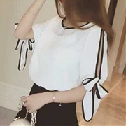 圓領露肩蝴蝶結綁帶雪紡上衣 [上衣]