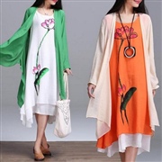 復古民族印花長裙套裝連身裙 [套裝] #1-橘色 ...