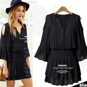 雪紡連身裙 [連身裙] #1-裸色 #2-黑色