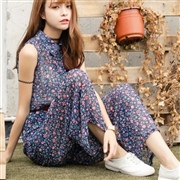 雪紡碎花長褲高腰顯瘦闊腿連身褲 [連身褲]