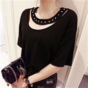 精緻鏤空釘釘掛脖邊寬鬆上衣 [上衣] #1-白色 ...