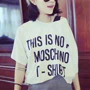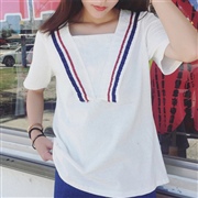 寬鬆條紋短袖假兩件上衣 [上衣] #1-白色 #2...