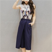 雪紡上衣七分薄款闊腿褲兩件套 [套裝]