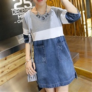 拼接牛仔連身裙 [連身裙] #1-灰色 #2-黑色
