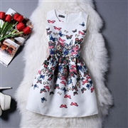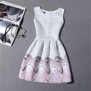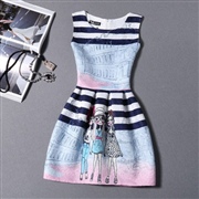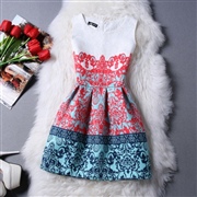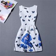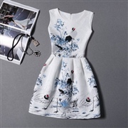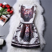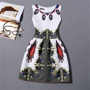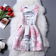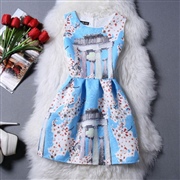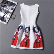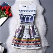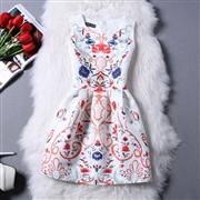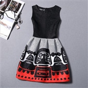 復古印提花無袖蓬蓬連身裙 [連身裙]