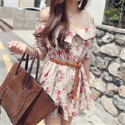 一字領排扣吊帶背心碎花寬鬆腰帶連身裙 [連身裙] ...