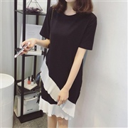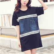 中長款牛仔拼接短袖上衣 [連身裙]