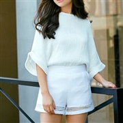 蝙蝠袖寬鬆上衣+百搭休閒褲短褲 [套裝]