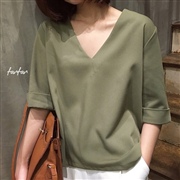 袖口卷邊順滑寬鬆顯瘦七分袖套頭上衣 [上衣] #1...