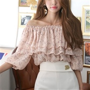 一字領露肩碎花雪紡衫 [上衣]