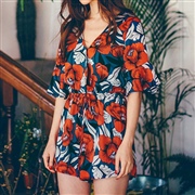 花朵雪紡連身褲短褲 [連身褲] #1-紅色 #2-...