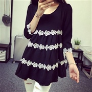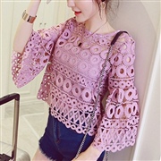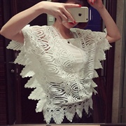 鉤花蕾絲鏤空透視蝙蝠袖小背心兩件套套裝 [上衣]