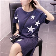 露背寬鬆開叉星星連身裙 [連身裙] #1-深藍色 ...