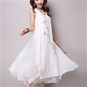 連身裙長裙刺繡白無袖背心裙 [連身裙]