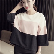 前短後長圓領撞色短袖上衣 [上衣] #1-粉紅色 ...