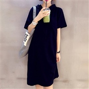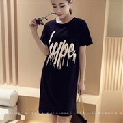 套頭圓領短袖字母印花中長款上衣 [連身裙]
