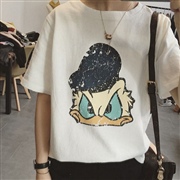 寬鬆圓領卡通印花做舊短袖上衣 [上衣] [TEE]...