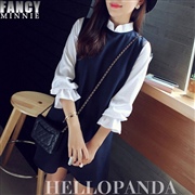 寬鬆長袖蓬蓬裙假兩件連身裙 [連身裙] #1-淺灰...